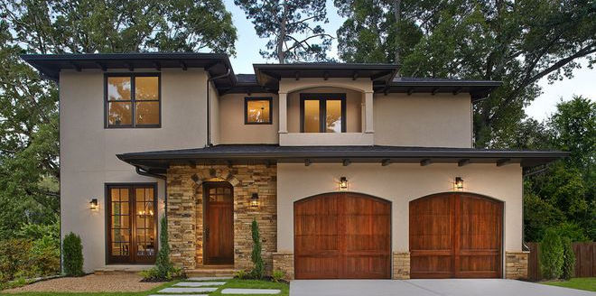 With the longer, lower design, many Contemporary Craftsman homes have only one floor, but others may have either a daylight basement or a small second story for the home's bedrooms. Rooflines are lower than traditional Craftsman homes, and the exteriors are made up of clean lines